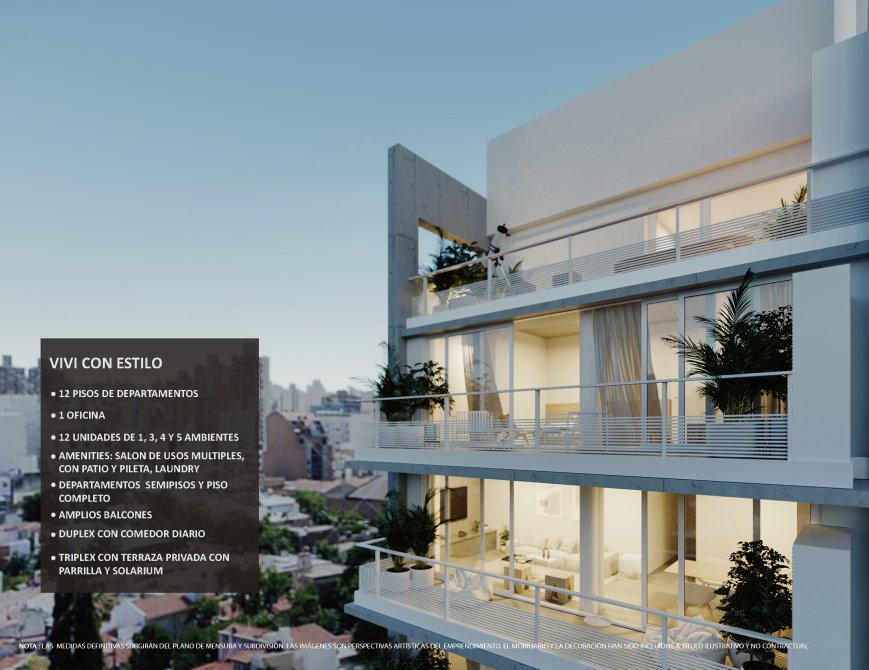 Este proyecto en Avellaneda consta de 13 unidades distribuidas en 11 pisos, compuesto de un estudio profesional, seis monoambientes, cuatro 3 ambientes, un duplex de 5 ambientes y un triplex de 4 ambientes.